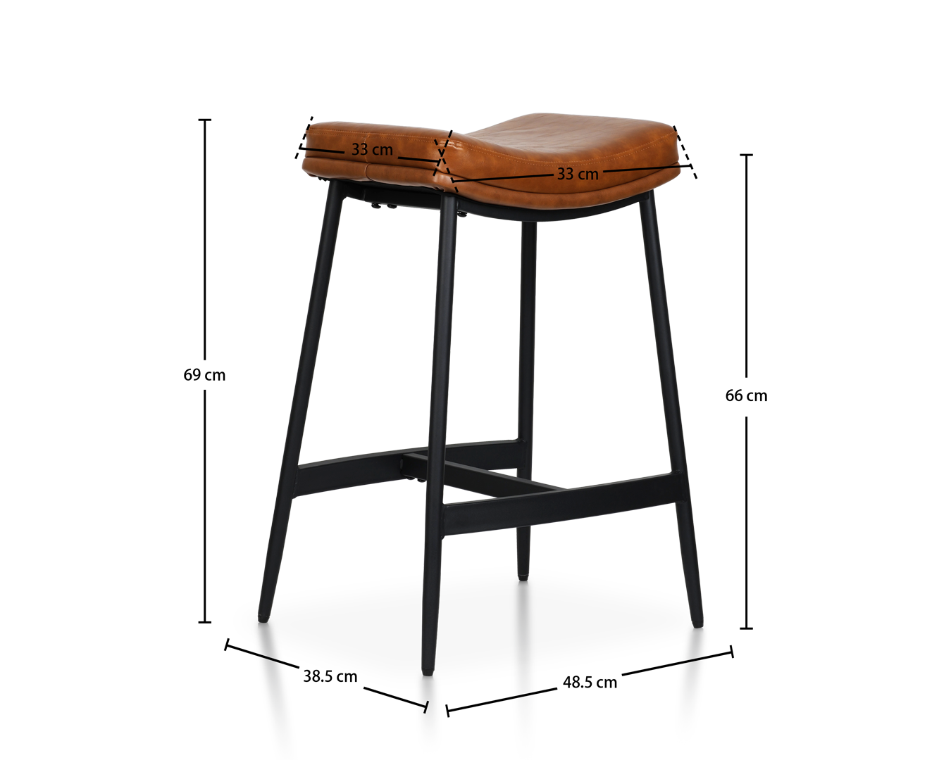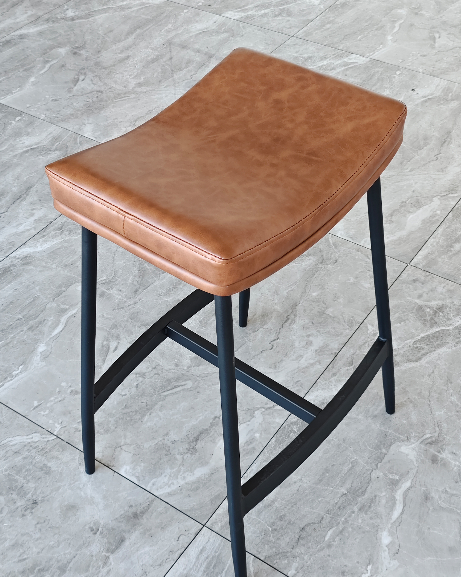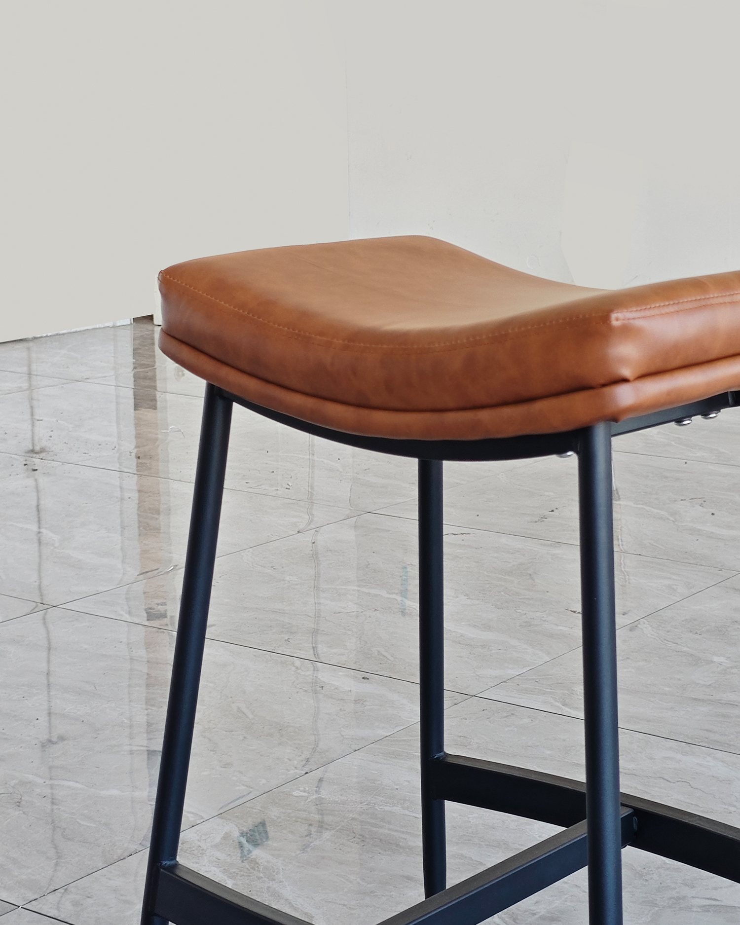 • Tämä uloste on juurtunut teollisiin tyylikkäisiin ja ajattomiin nahka -aineisiin, ja jakkara kanavoi vintage -baarien ja modernien parvien energiaa. Sen satulanmuotoinen istuin herättää hyvin kuluneen nahkatuolin mukavuuden.