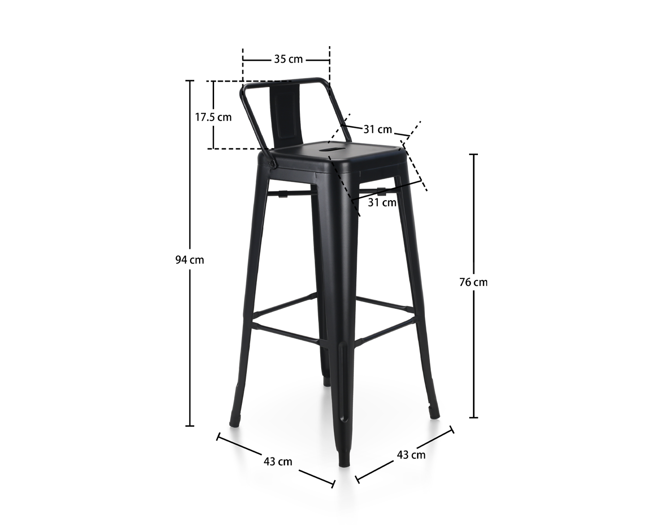- Koko: W43*D43*H94 cm / SH: 76cm