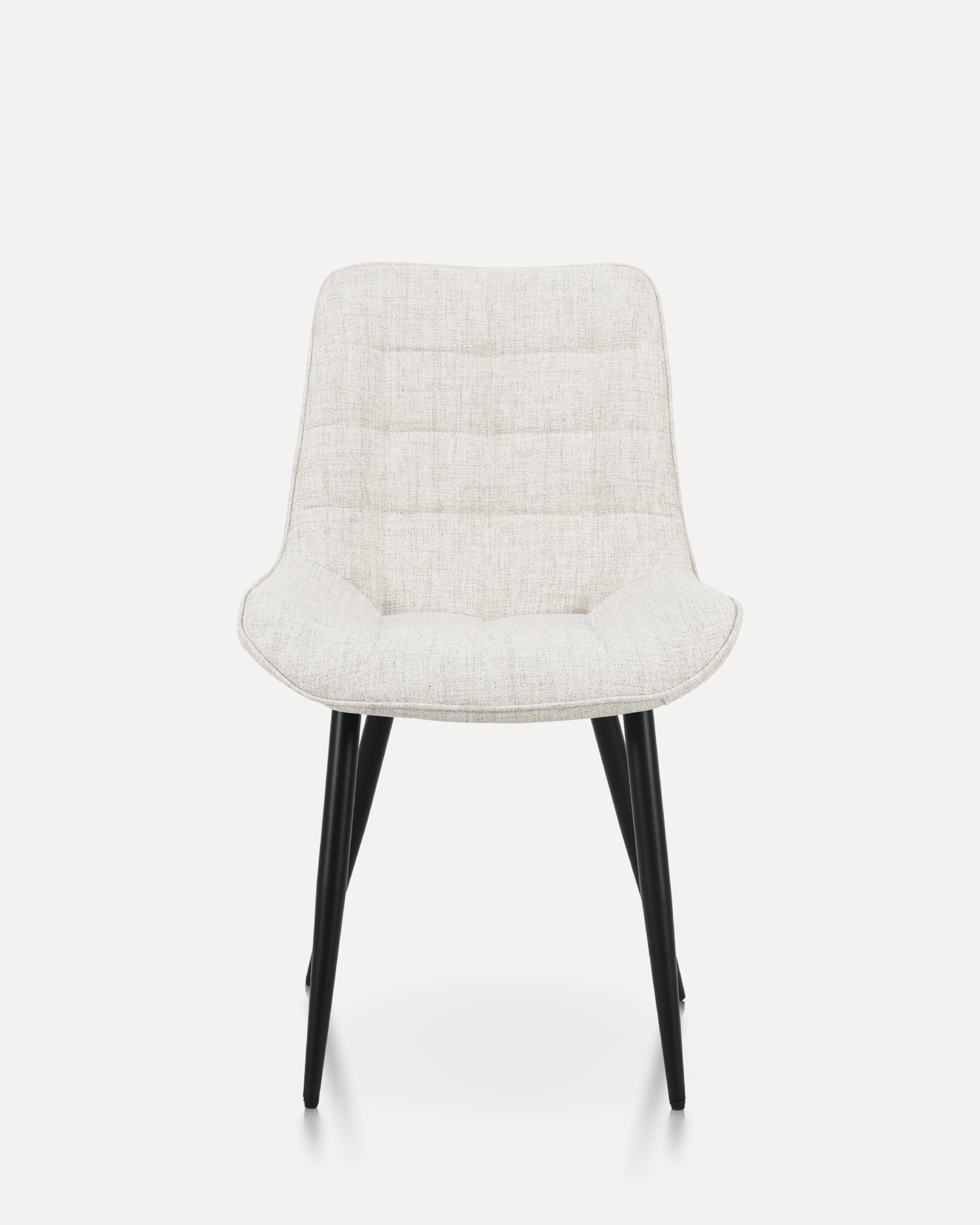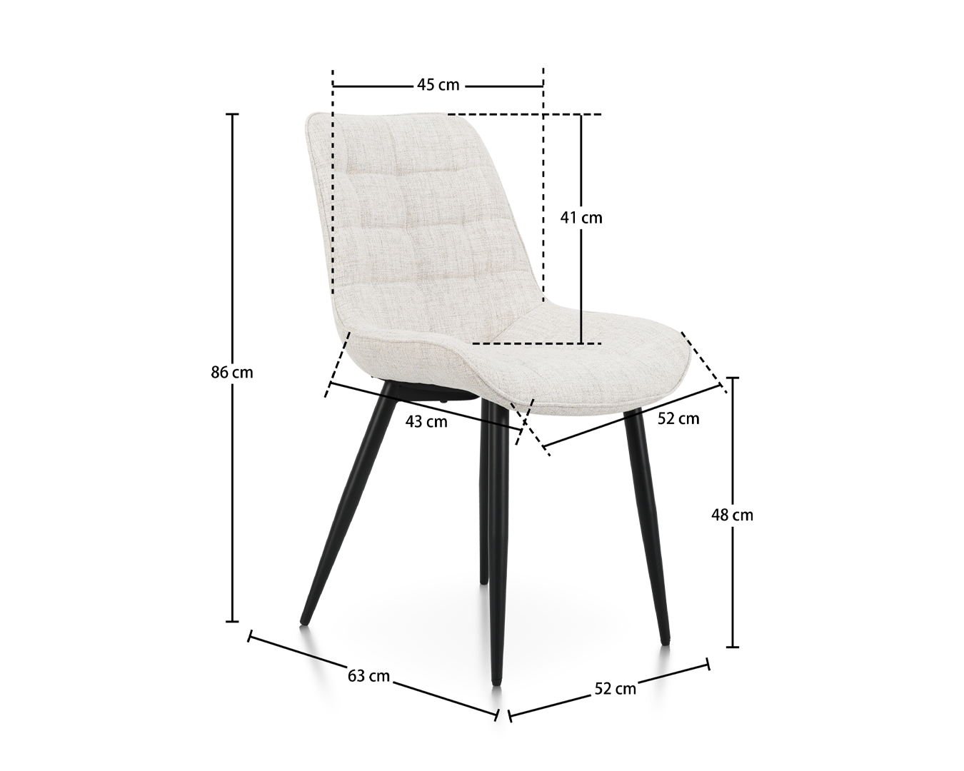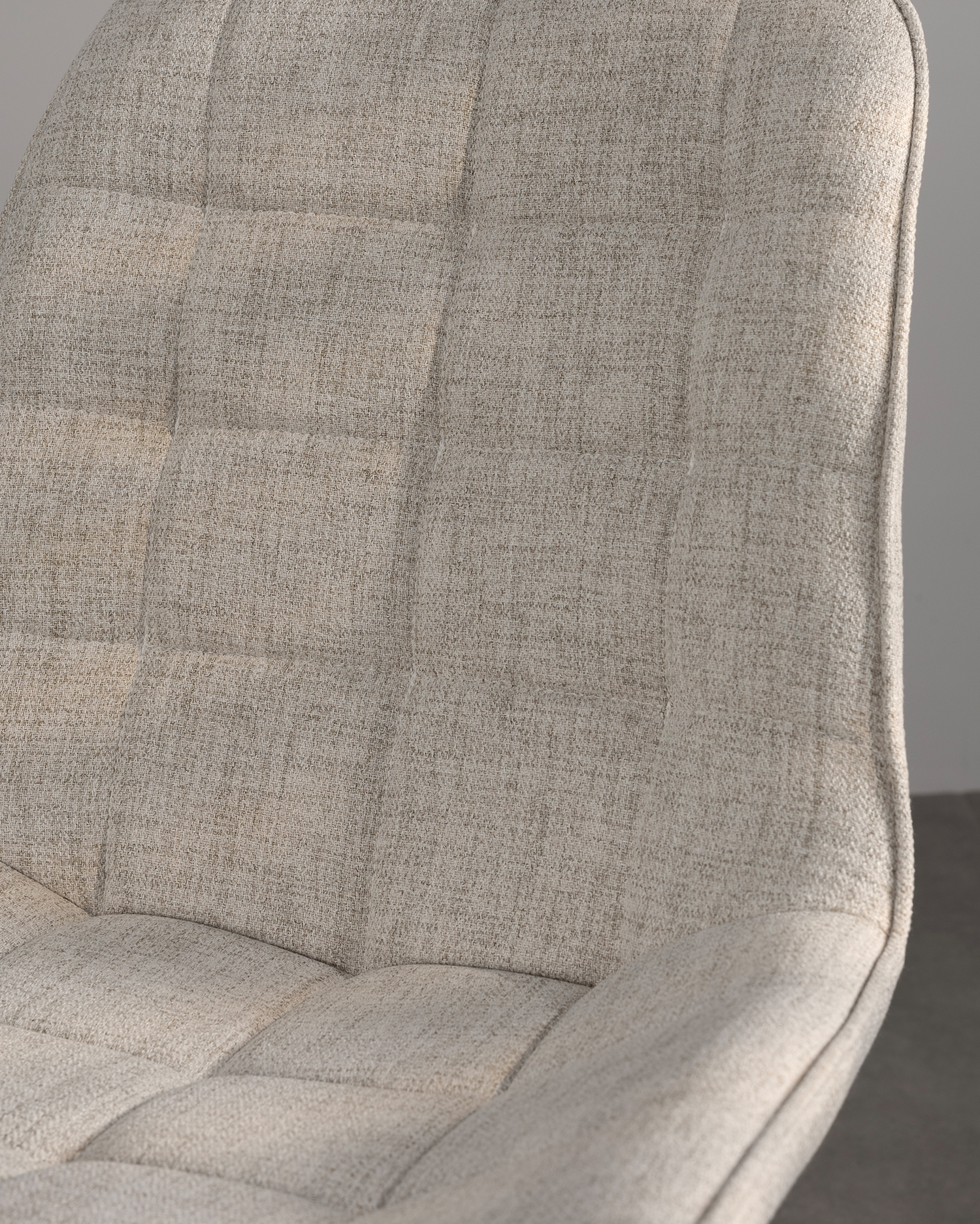 • Verhoiltu istuin: Istuin on verhoiltu korkealaatuisessa, kuvioidussa kankaassa, joka tarjoaa pehmeän ja mukavan istuinkokemuksen. Neutraali beige väri täydentää mitä tahansa ruokasalin sisustusta.