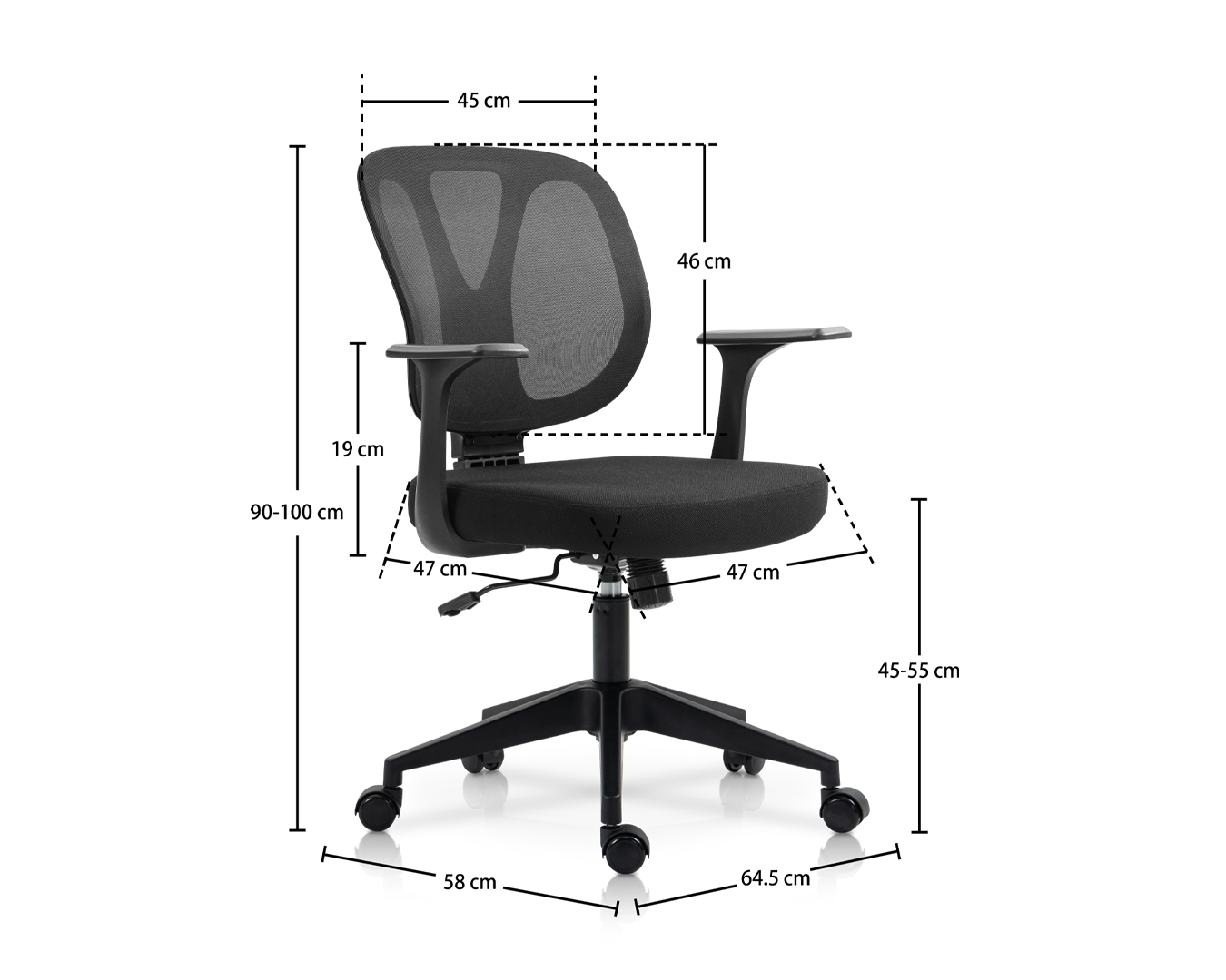 -Koko: W64.5*D58*H90-100 cm / SH: 45-55 cm
