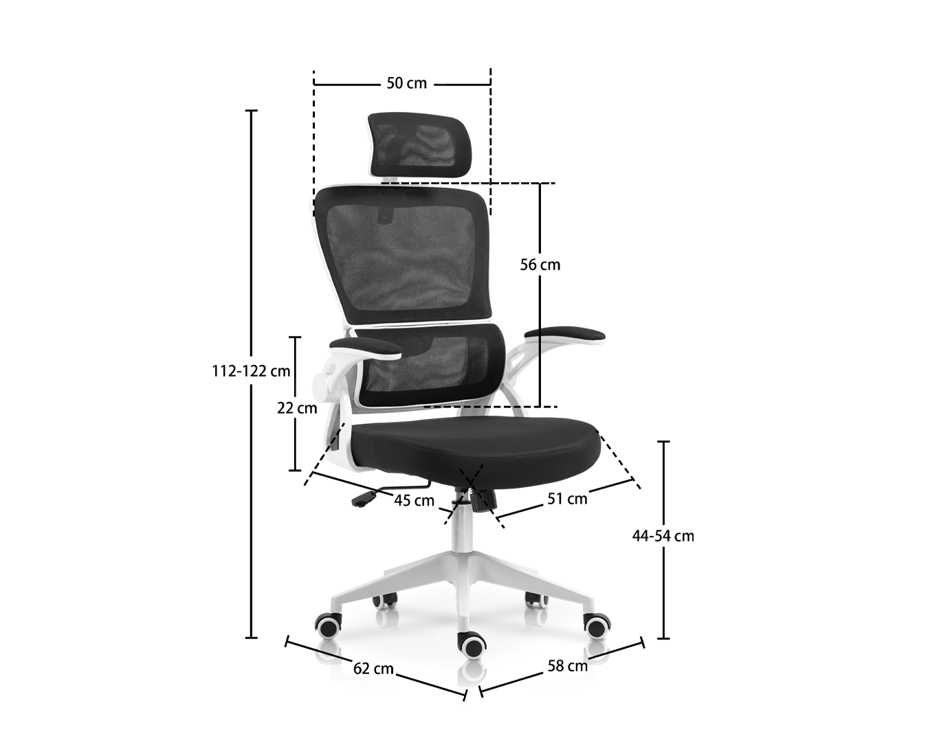• Tämä toimistotuoli tarjoaa silmiinpistävän valkoisen ja mustan värimaailman, jolla on ainutlaatuinen muotoilu, joka täydentää kaikkia moderneja toimistokoristeita. Säädettävillä käsinojilla varustettu tuoli antaa sinun mukauttaa käsivarsien sijainnin optimaalisen mukavuuden saavuttamiseksi. Käsinojaa voidaan siirtää ylös tai alas, ja ne voidaan myös säätää kulmaan sisäänpäin tai ulospäin, varmistaen, että käsivarsi tuetaan luonnollisimmassa asennossa.