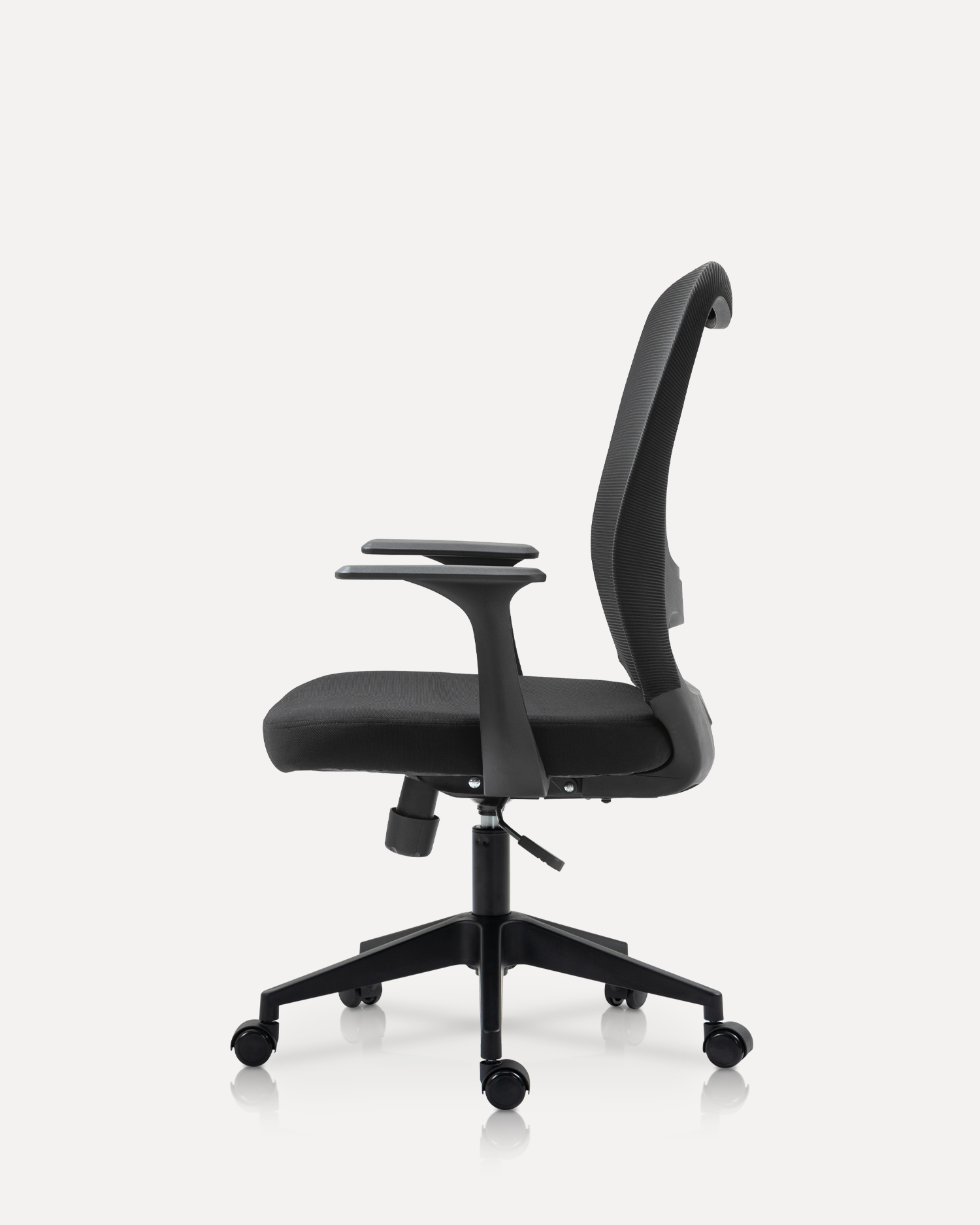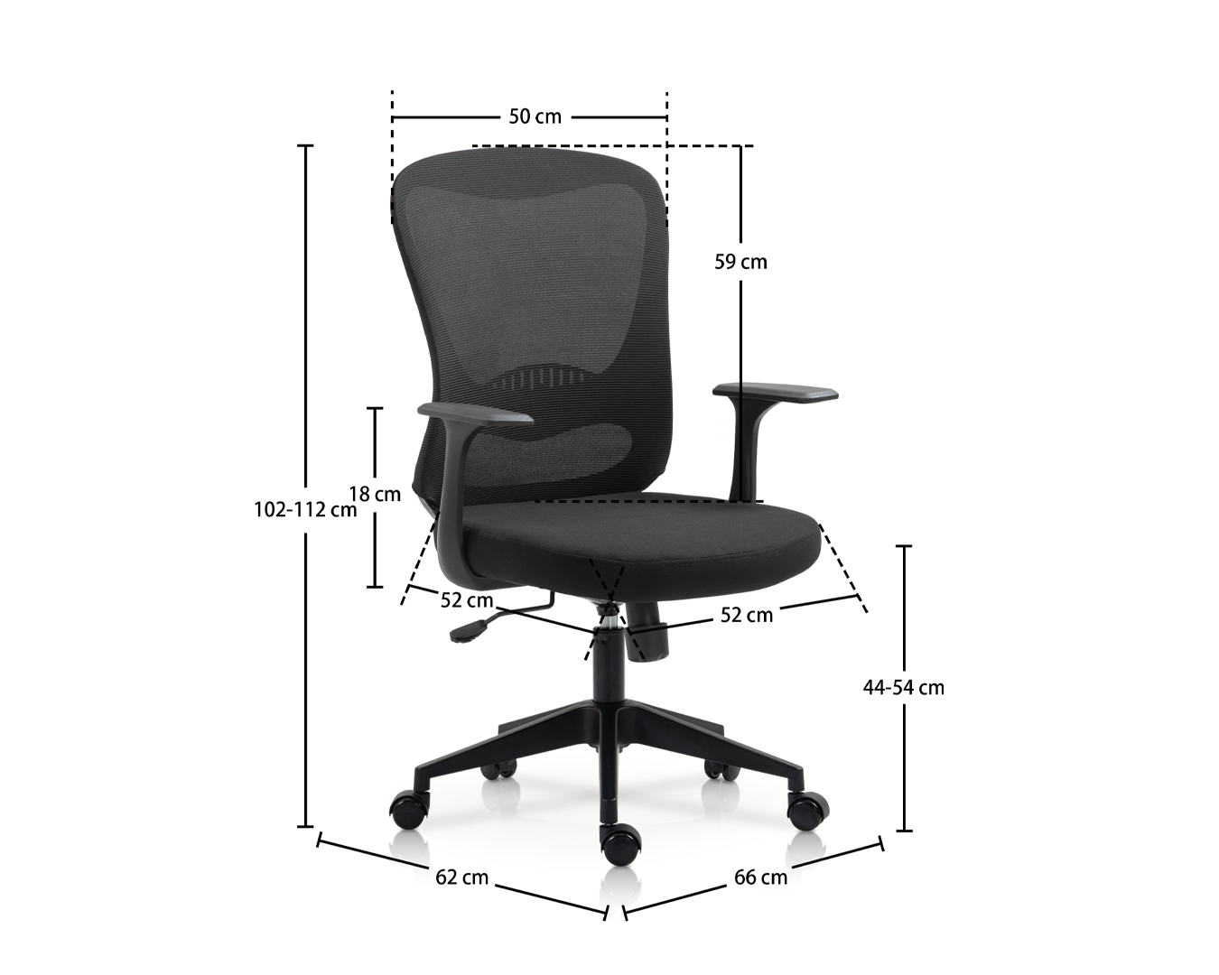 • Ergonomia on tämän tuolin suunnittelun ytimessä. Säädettävän korkeusmekanismin avulla voit mukauttaa tuolia vastaamaan erityistarpeitasi varmistaen, että jalat ovat tasaisia ​​maassa ja polvet ovat 90 asteen kulmassa. Käsinojaa voidaan säätää, jotta saadaan täydellinen tuki käsivarsillesi, vähentäen rasitusta harteillasi ja kaulassa. Selkänpitämään rakennettu lannerangan tuki edistää asianmukaista asentoa, mikä parantaa yleistä mukavuutta ja tuottavuutta.