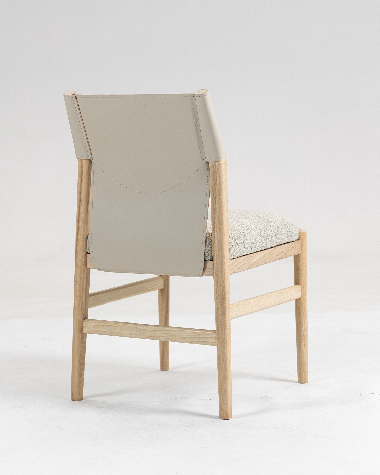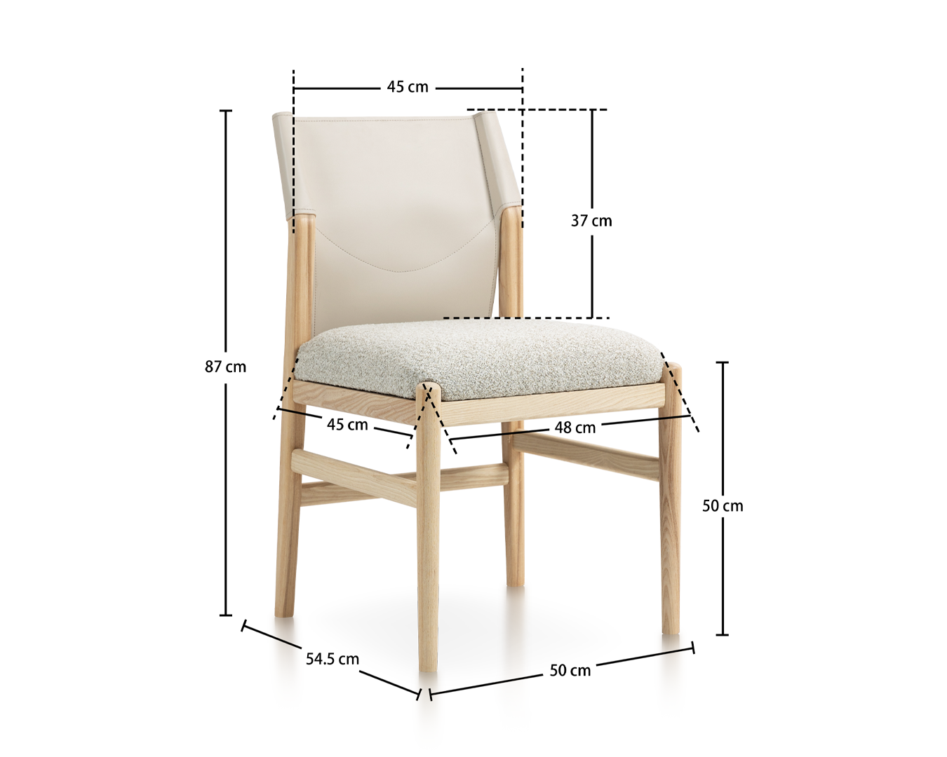 • Korkealaatuisesta tuhkapuusta valmistettu runko esittelee materiaalin luonnollista kauneutta ja kestävyyttä, ja sen sileä viimeistely ja hienovaraiset viljakuviot lisäävät lämpöä mihin tahansa sisätilaan. Satulanahka -selkänoja tarjoaa ylellisen kosketuksen, joka tarjoaa sekä tyyliä että tukea. Sen joustava rakenne ja rikas väri täydentävät tuolin yleistä suunnittelua, mikä tekee siitä ihanteellisen valinnan niille, jotka arvostavat hienoa käsityötä.
