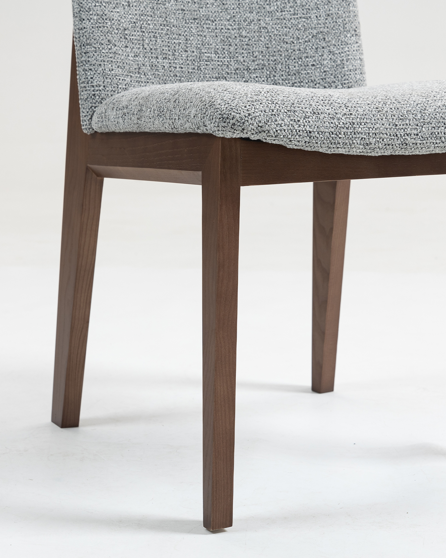• Rakennettu kiinteästä tuhkapuusta, joka tunnetaan voimasta ja pitkäikäisyydestään, ja viimeistelty lämpimällä, kutsuvalla sävyllä, joka parantaa sen luonnonkauneutta. Anteliaasti pehmustettu istuin ja selkänoja on verhoiltu pehmeään, kestävään kankaaseen, joka tarjoaa ylellisen oleskelukokemuksen. Sen ergonominen suunnittelu tukee asianmukaista asentoa varmistaen, että voit rentoutua tai työskennellä helposti.