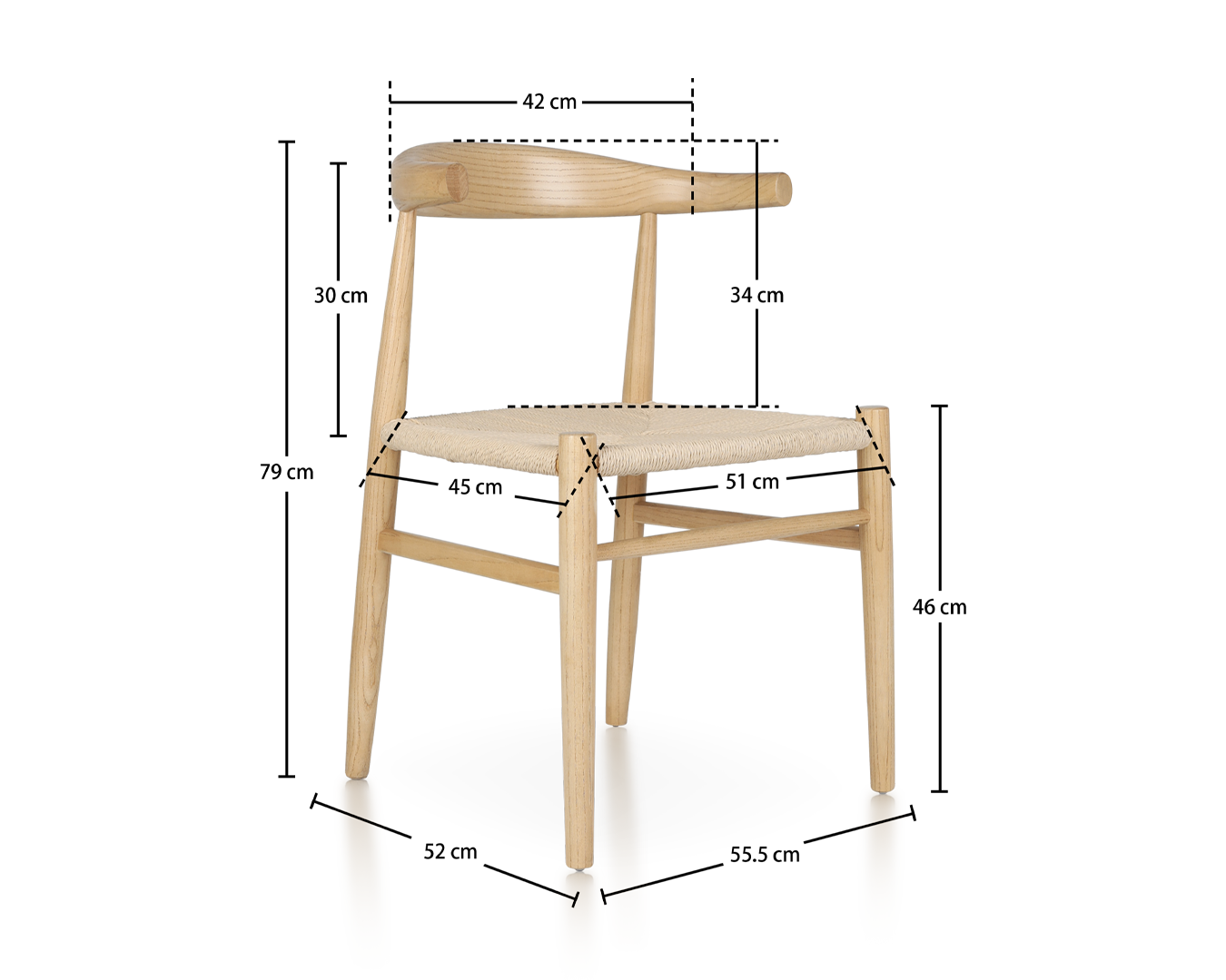 - Koko: W55.5*D52*H79CM / SH: 46 cm